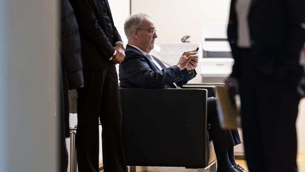 Emojis im Bundesratschat: Bundespräsident Guy Parmelin am Rande einer SVP-Fraktionssitzung am Smartphone.