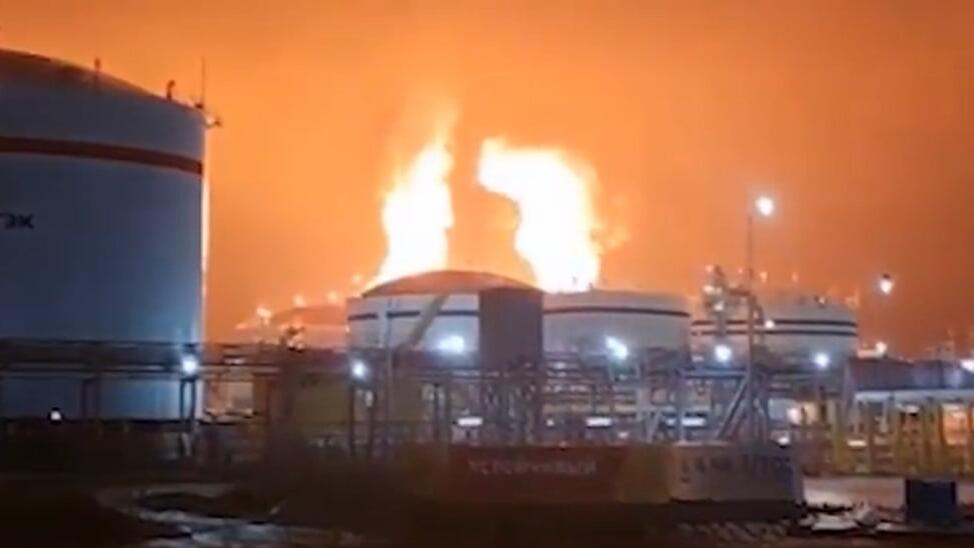 Heftige Schläge gegen die Öl-Infrastruktur: Grossbrand im Hafen von Ust-Luga nach dem ukrainischen Drohnenangriff.