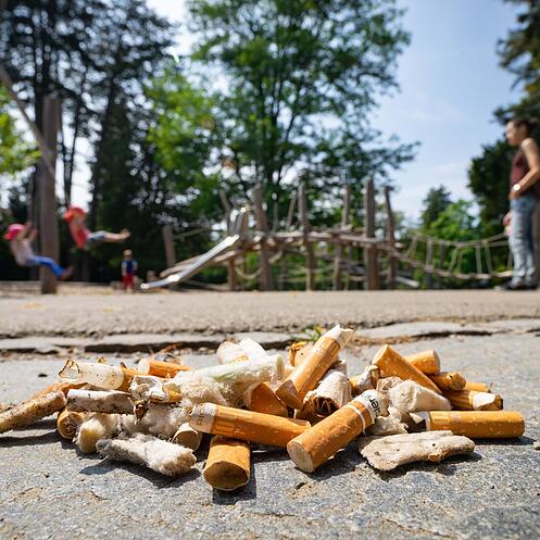 Im Durchschnitt liegen auf Schweizer Spielplätzen etwa 90 Zigarettenstummel. So lautet das unappetitliche Fazit einer Sammelaktion, die der Verein «stop2drop» im letzten Jahr durchführte. «stop2drop» bekämpft Zigaretten-Littering und setzt sich dafür ein, dass Kinder in einer rauchfreien Umgebung aufwachsen können.