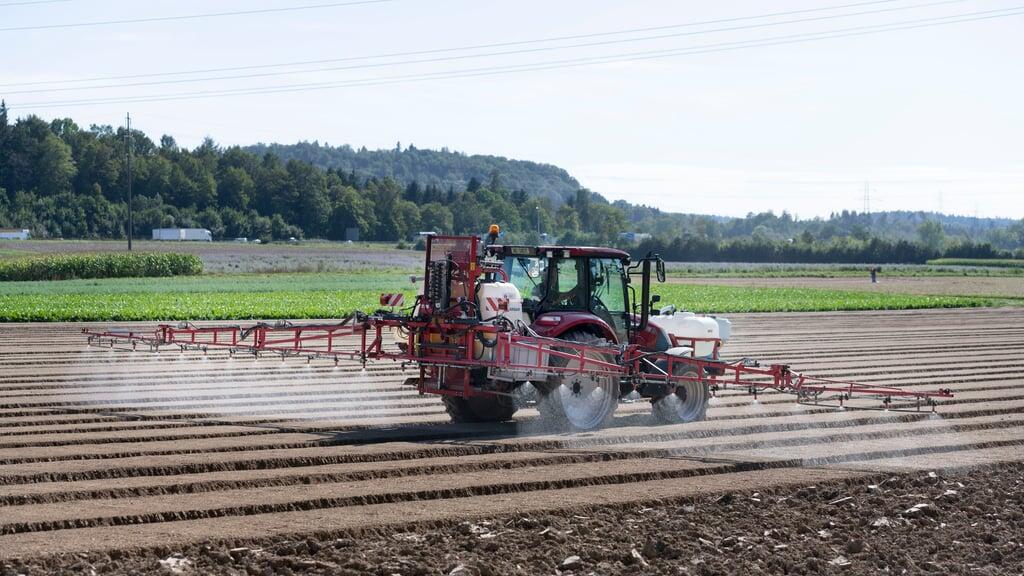 Ein Bauer bringt in Birmenstorf Pflanzenschutzmittel aus.