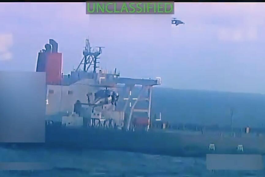 Bondi und Patel veröffentlichten ein Video, das die spektakuläre Aktion zeigen soll. Darauf ist ein Tanker zu sehen, dem sich ein Hubschrauber nähert. Soldaten seilen sich aufs Deck des Tankers ab und sichern das Schiff mit gezückten Waffen. Von der Mannschaft ist nichts zu sehen.