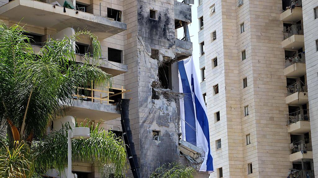 Die israelische Flagge am Ort des Einschlags: In diesem Haus starb Yvette Shmilovitz durch einen Raketenangriff aus dem Iran.