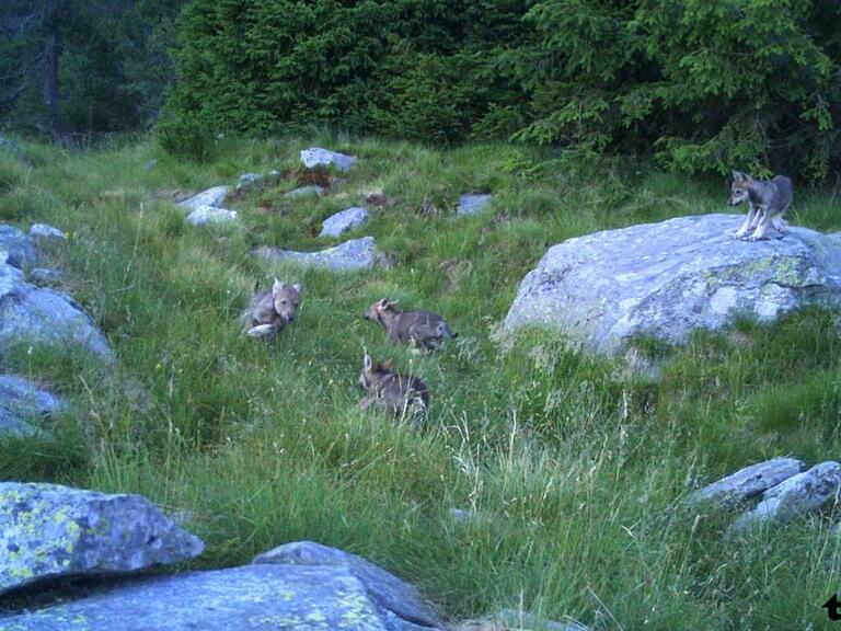 Es ist der dritte Wurf des Weibchens F8 und des Männchens M47, wie es in der Mitteilung heisst. Mittels diverser Fotofallen im Revier des Wolfspaars hätten Wildhüter des Tessiner Amts für Jagd und Fischerei im Laufe des Sommers die vier Welpen entdeckt.