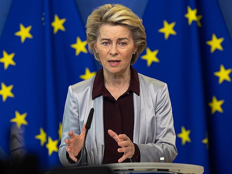 EU-Präsidentin Ursula von der Leyen: Die EU-Kommission hat einen Rahmenvertrag über bis zu 160 Millionen Dosen des aussichtsreichen Corona-Impfstoffs von Moderna ausgehandelt. Foto: Olivier Matthys/AP Pool/dpa