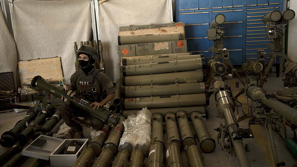 Soldat mit beschlagnahmten Waffen: Beim Einmarsch in den Libanon hob das israelische Militär eine Vielzahl von Waffenlagern der Hisbollah aus.