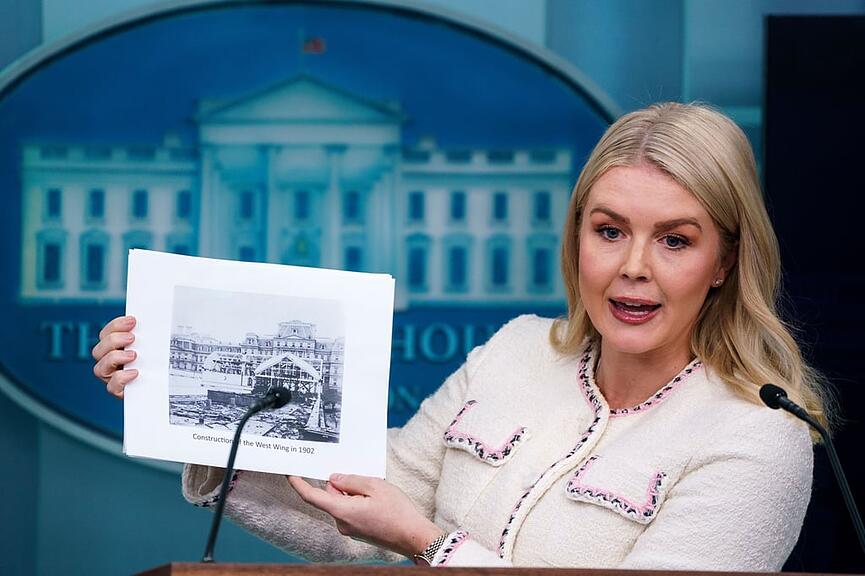 Leavitt betonte, auch frühere Präsidenten hätten das Weisse Haus mehrfach umgestaltet, und zeigte während der Pressekonferenz Fotos vergangener Umbauten. Die nun sichtbaren Abrissarbeiten seien Teil der ersten Bauphase. Auf die Frage, ob Trump weitere Renovierungen plane, sagte sie: «Nicht, soweit ich weiss. Aber er ist im Herzen ein Bauherr. Seine Gedanken kreisen immer darum, wie sich das Weisse Haus verbessern lässt.»