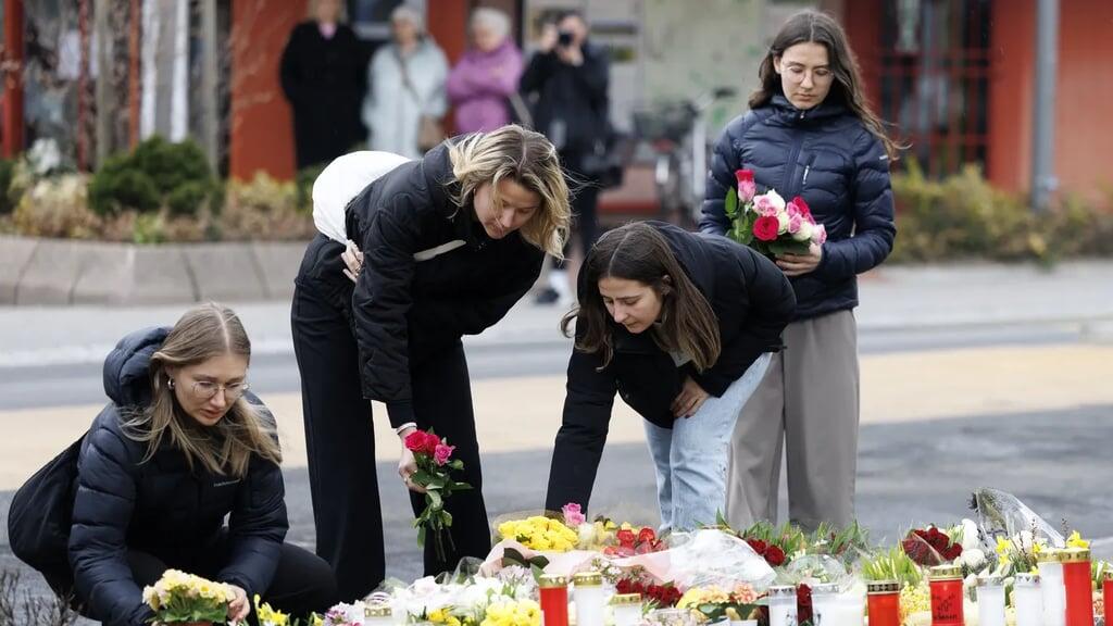 Menschen legen nach der Tragödie von Kerzers Blumen nieder. Sechs Personen sind am Dienstag beim Brand eines Postautos ums Leben gekommen.
