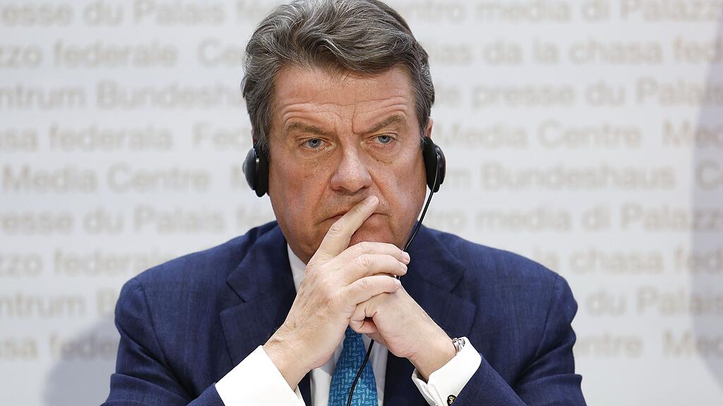 UBS-Präsident Colm Kelleher an der Pressekonferenz des Bundes am Sonntagabend.
