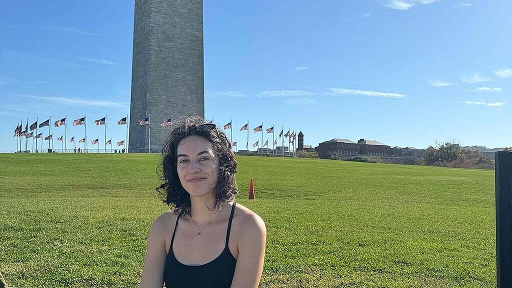 Ally (24) sitzt am Mittwochmorgen vor dem Washington Monument. Nach der Präsidentschaftswahl muss sie sich erst mal sammeln.