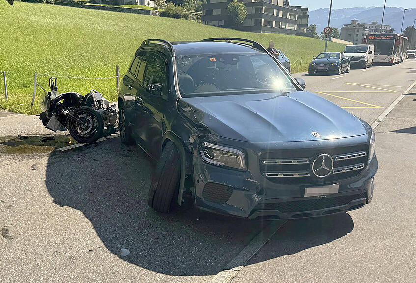 Am Freitagvormittag fuhr kurz vor 11 Uhr eine 41-jährige Frau mit ihrem Mercedes auf der Gersauerstrasse in Richtung Gersau. Dann ereignete sich ein verhängnisvoller Verkehrsunfall: «Beim Abbiegen in Richtung Hopfräben kam es zur Kollision mit einem Motorrad, welches auf der Gersauerstrasse in der Gegenrichtung unterwegs war», so die Kantonspolizei Schwyz in einer Medienmitteilung.