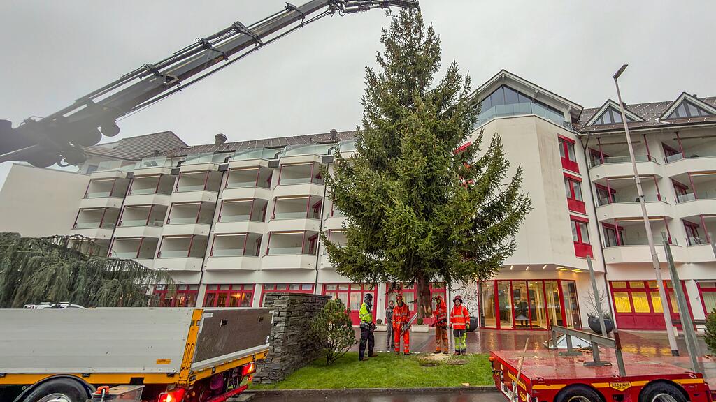Der Swiss Holiday Park in Morschach lässt sich dazu alle Jahre um diese Zeit eine der grössten gehauenen Tannen vor dem Hotel aufrichten. Diese 14 Meter lange und 24 Jahre alte Tanne musste in Sattel – weil sie zu nahe an einem Wohnhaus stand – entfernt werden. Diesen riesigen Weihnachtsbaum haben Fachkräfte der Oberallmeindkorporation (OAK) in Morschach wieder aufgerichtet. Die Rekord-Tanne dürfte es diesmal nicht mehr sein; im Kreisel beim Mythen Center steht ein ebenso grosser, mit Lichtern und Kugeln geschmückter Christbaum. (ie)