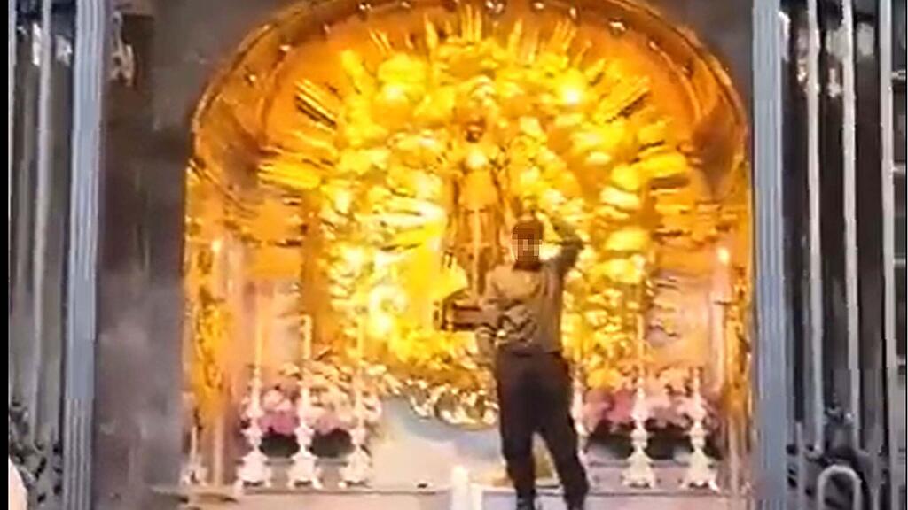 Jetzt ist ein Video aufgetaucht. Man sieht, wie der junge Mann in grauem Pulli und schwarzen Hosen mit dem Zepter der Madonna der Statue die Kleider entreisst. Die Krone hält er auf dem Kopf, als wollte er sagen: «Seht her, ich bin ein König.» Wortlos tritt er danach vom Altar herunter, vor den Augen schockierter Gläubiger.
