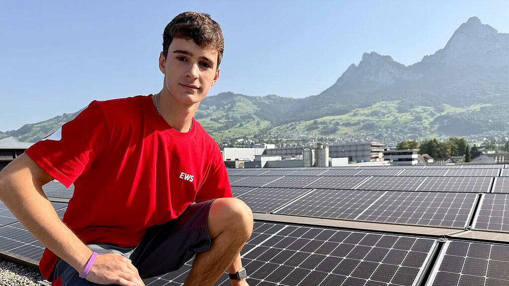 «Schwindlig wird mir nicht», sagt Akim Nikolov und steigt die Leiter zum Dach des EWS-Gebäudes in Ibach hinauf. Dies wäre auch eine durchaus schlechte Eigenschaft als künftiger Solarinstallateur. Vor zwei Wochen hat er seine dreijährige Ausbildung beim Team Rot begonnen. Seit letztem Jahr bietet das EWS diese Berufslehre an. «Ein bisschen aufgeregt bin ich schon, aber die Vorfreude überwiegt definitiv.»