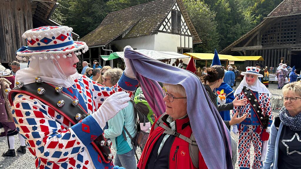 Am Samstag kam im Freilichtmuseum Ballenberg Fasnachtsstimmung auf: Im Rahmen des Herbstmarktes wurde im Berner Oberland Zentralschweizer Brauchtum präsentiert – mit dabei auch die Nüsslergesellschaft Brunnen-Ingenbohl. Den ganzen Tag sorgte eine 30-köpfige Rott auf dem Ballenberg für Stimmung – die Maschgraden trieben ihre Spässe mit den Besucherinnen und Besuchern, nüssleten den Narrentanz, liessen die Kinder «Sind-so-guet» rufen und verteilten Orangen und Zältli.
