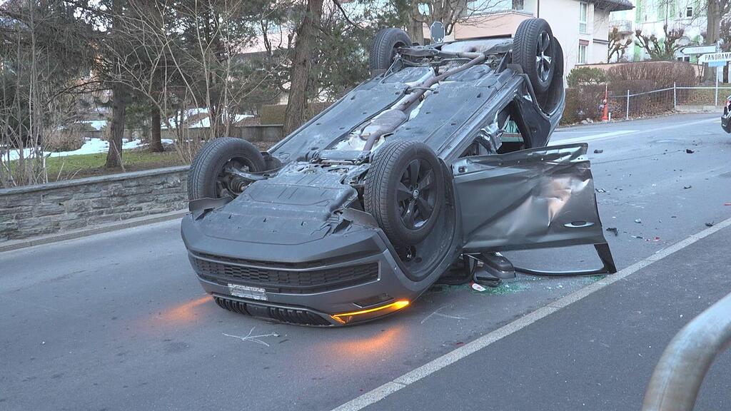 Auto auf dem Dach: Zwei Verletzte an der Eisenbahnstrasse