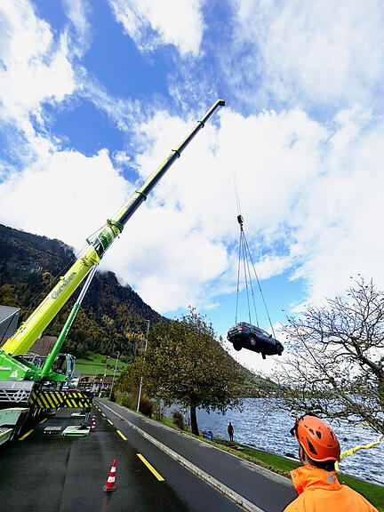 Während der Bergung am Freitag war die Luzernerstrasse für rund zwei Stunden nur einspurig befahrbar. Am Personenwagen entstand grosser Sachschaden. Im Einsatz standen neben der Kantonspolizei Schwyz auch die Zuger Polizei (Seepolizei), die Feuerwehr der Gemeinde Arth, ein privates Bauunternehmen mit einem Kran sowie ein Abschleppdienst. (lai)