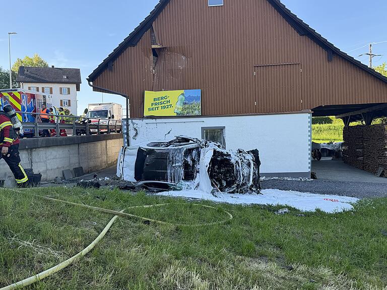 Nach der Kollision geriet das Fahrzeug in Brand.