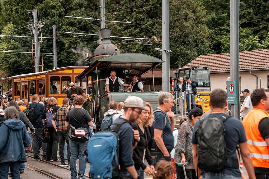 Zu den Höhepunkten zählten die Dampflok Nr. 7 mit stehendem Kessel, die legendäre Schneeschleuder Lok 8 sowie der Motorwagen Nr. 6 – der älteste noch fahrende Zahnradtriebwagen der Welt. Einige Gäste reisten gar im historischen Trans-Europ-Express (TEE) an. Der emotionale Höhepunkt der Feier fand auf Rigi Staffel statt, wo sich alle Fahrzeuge zur gemeinsamen Weiterfahrt Richtung Kulm sammelten. «Mit dieser einmaligen Möglichkeit, die historischen Fahrzeuge parallel und hautnah zu erleben, wollten wir nicht nur die Pionierleistungen an dieser Bahnstrecke würdigen, sondern auch der Bevölkerung und all unseren Gästen für ihre Treue danken», sagte CEO Frédéric Füssenich. Der geplante Überflug von 20 historischen Flugzeugen musste wetterbedingt ausfallen, soll aber am 1. August während der «Rigi Historic XXL-Tage» nachgeholt werden.