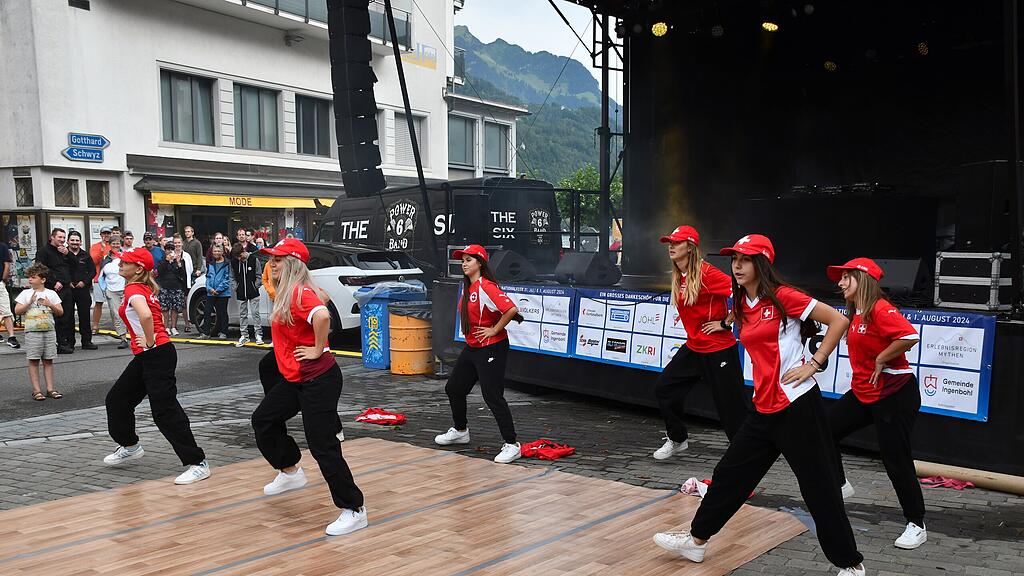 Das stürmische Wetter am frühen Mittwochabend brachte den Festbetrieb im Brunner Zentrum durcheinander. Bei Organisator Kurt Betschart von der Erlebnisregion Mythen kamen Erinnerungen an den Abend nach der Etappenankunft der Tour de Suisse 2022 auf. Doch diesmal waren die Zelte und die Bühne sicher.
