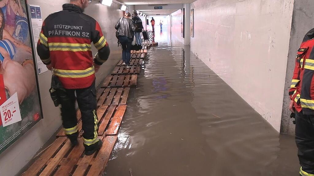 Der Bund hat am Freitag derweil seine Regenwarnungen im Vergleich zum Donnerstag ausgeweitet. Betroffen sind neben der Ostschweiz und des Kantons Graubünden auch die Zentralschweiz. In den Kantonen Schwyz und Uri warnt der Bund neu vor Dauerregen der Gefahrenstufe 3 von 5 (erhebliche Gefahr). Im Kanton Schwyz musste am Freitag die Feuerwehr zum Bahnhof Pfäffikon ausrücken, dort stand die Unterführung unter Wasser.