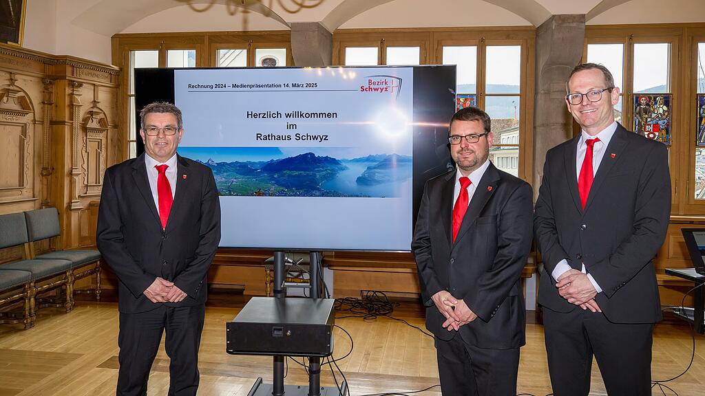 Ammann Walter Tresch, Säckelmeister René Gwerder und Kassier Ueli Koller vom Bezirk Schwyz präsentierten am Freitagnachmittag die Rechnung 2024.