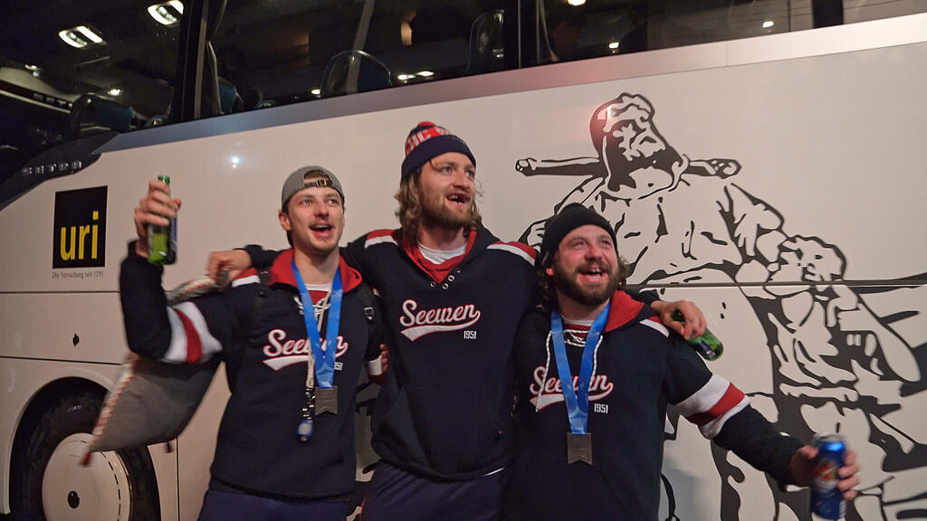 Für den EHC Seewen geht eine traumhafte Saison als Vizemeister zu Ende. Bis in die frühen Morgenstunden feiert die Mannschaft mit ihren treuen Anhängern.
