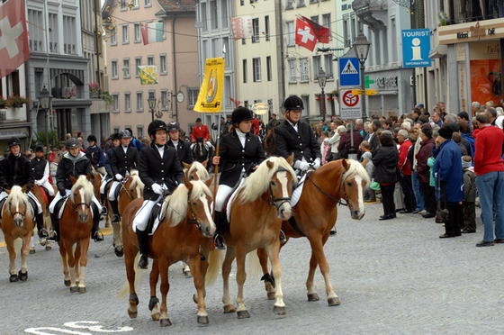 Die Emotionen zu beschreiben, wie die vielen hundert Zuschauer den Auftritt der Reiter-Wallfahrt gestern Sonntag erlebten, ist schwierig. Man muss es erlebt haben, hautnah dabeistehen, wenn das Echo vom Geklapper Dutzender Pferdehufe an den Hauswänden erschallt. Empfangen wurde die Reiterschar von Pater Maurus Burkhard vor den Pforten der Klosterkirche. Weit über 200 Reiter, Reiterinnen und Gespanne waren auf dem Klosterplatz versammelt.
