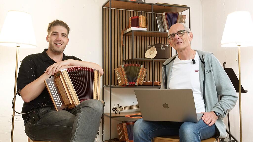 Musiker Dominik Flückiger (links) und Fotograf Stefan Zürrer präsentieren gemeinsam «Schwyzer Klangbilder reloaded».