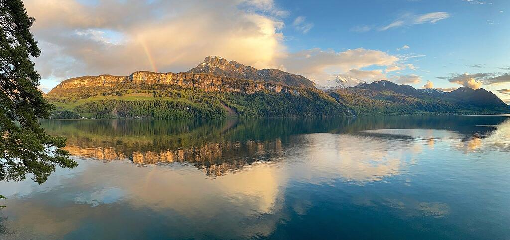 Ruhig liegt das Gersauer Seebecken da und bietet eindrückliche Spiegelungen.