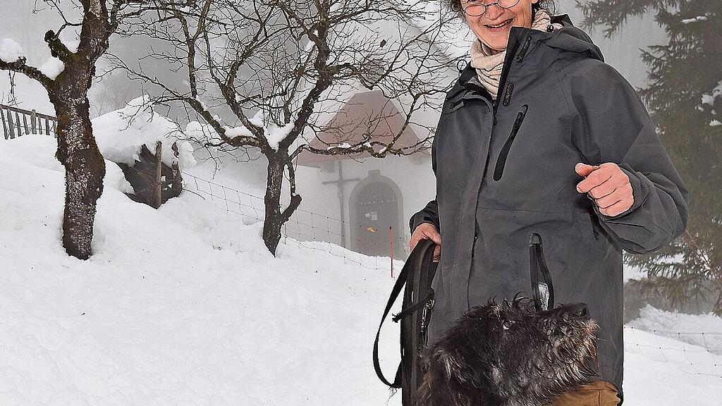 Die Eremitin Maria Baptista mit ihren beiden Hunden im Tschütschi. Bild: Andreas Seeholzer