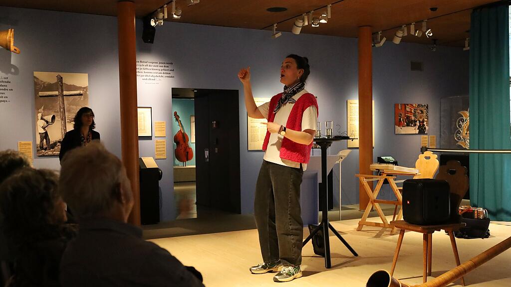 Rund eine Woche vor dem Ende der Ausstellung «Volksmusik» im Forum Schweizer Geschichte brachte die Jodlerin Simone Felber noch einmal ein grosses Publikum zusammen. Die Gewinnerin des Schweizer Musikpreises 2024 stellte den Jodel ins Zentrum ihres Vortrags und setzte dabei die traditionellen Werte der Gesangskunst in Verbindung mit der heutigen Bedeutung der Volksmusik.