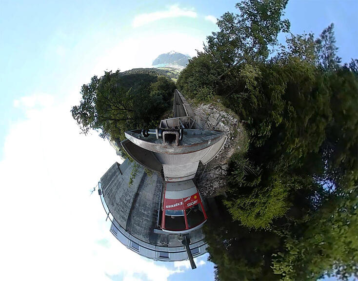 Die VR-Kamera des «Boten» hat derweil eine Talfahrt in 360° aufgenommen. Faszinierend ist nicht nur der Blick in die Ferne, sondern auch auf die Geleise aus nächster Nähe.