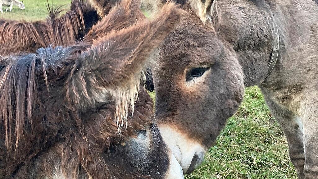 Iiiiaaaaahh – am Sonnenberg in Arth herrscht grad Aufregung. Fünf Esel rennen in rasantem Tempo die Wiese hinunter. Kurz vor dem Zaun machen sie einen gekonnt-abrupten Halt. Mit gespitzten Ohren begrüssen sie ihren Besitzer und Freund Olivier Nussbaum freundlich. Das Eselfohlen Auri hüpft vor Freude und kuschelt sich mit seiner Mutter Maya an seinen Besitzer. Dieser krault die beiden am Hals. «Meine Esel sind sehr anhänglich und haben Freude, wenn ich sie besuche», lacht er.