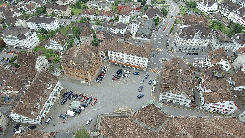 Was sollte sich beim Verkehr im Zentrum von Schwyz ändern? Der Hauptplatz gehört dem Bezirk Schwyz und ist auch Teil der Umfrage «Digitale Landsgemeinde» der Gemeinde Schwyz.
