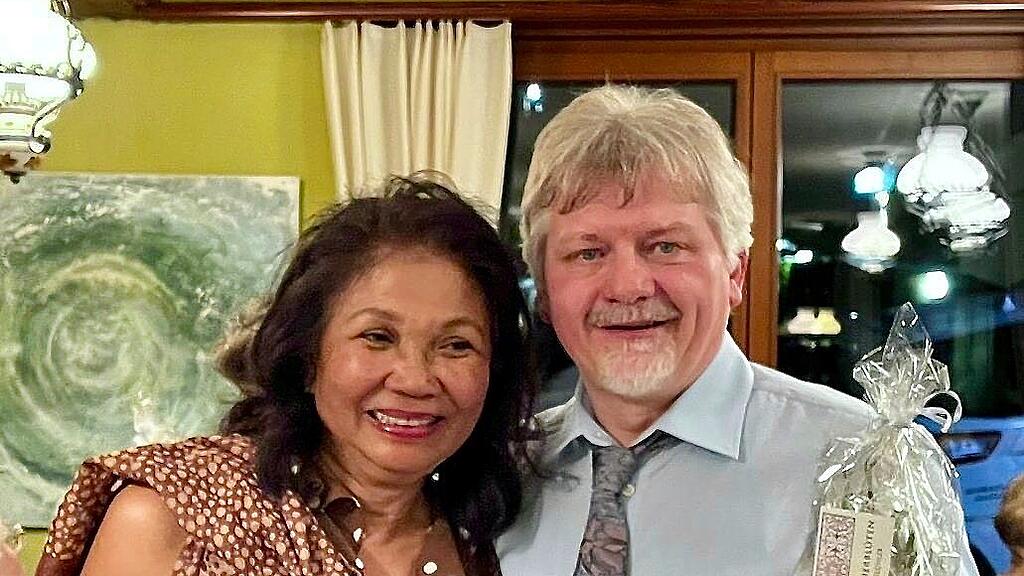 Präsident Karl Nemes gratuliert der Sängerin Anita Völkle für 20 Jahre Mitgliedschaft.
