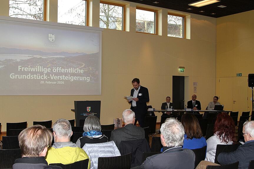 Zu Beginn verlas Gantrufer David Stössel routiniert mehrere Minuten lang die Gantbedingungen. Voraussetzung für einen gültigen Erwerb sei unter anderem, dass nach dem Zuschlag ein Bankcheck über 7,6 Millionen Franken vorgelegt werden könne.