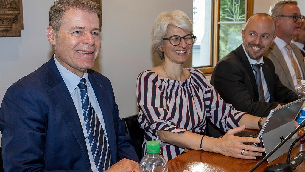 Dominik Zehnder (FDP, Freienbach) wurde 2024 zum neuen Vizepräsidenten des Kantonsrats gewählt, rechts von ihm die Kantonsratsmitglieder Rita Lüönd, Reto Keller und Thomas Grieder.