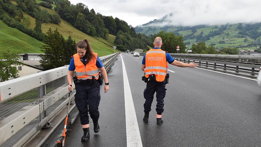 Unfall auf der Autobahn zwischen Seewen und Brunnen: Ein Auto ist um 7.30 Uhr etwa auf Höhe der Agro Energie Schwyz in die Leitplanke geknallt. Nach dem 117-Notruf sind Adriana Camenzind und Sven Lammer die Ersten, die vor Ort sind. Die Polizistin und der Polizist treffen zum Glück einen unverletzten Lenker an und beginnen sofort mit ihrer Arbeit. Sie sichern die Unfallstelle, befragen den Fahrer und kontaktieren das Bundesamt für Strassen für die Aufräumarbeiten auf der Strasse.
