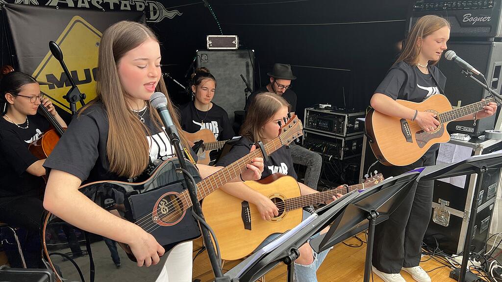 Der Schwyzer Dorf-Verein British Bastards rockte mit Acoustix und Rocking Youngsters von der Musikschule Schwyz sowie mit Muck, Master of the Revels und Son Cesano am Samstag die Hofmatt in Schwyz. Unser Bild zeigt Acoustix mit Musiklehrer Mattia Beffa.