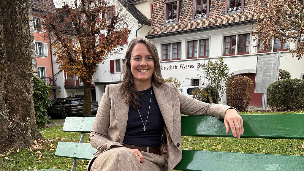 Die Ibächlerin Martina Trütsch, Geschäftsführerin des Verbands Spitäler Zentralschweiz, in der Metzghofstatt hinter dem Rathaus in Schwyz.