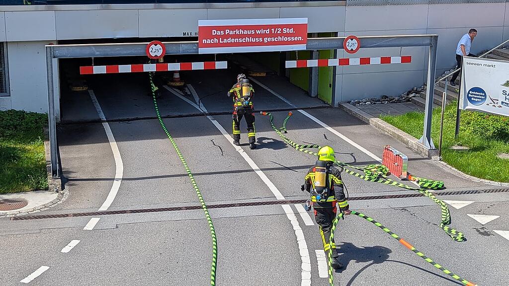 Ein Grossaufgebot an Feuerwehr, Polizei und Rettungsdienst rückte am Dienstag um die Mittagszeit um 12.30 Uhr nach Seewen aus. In der Tiefgarage im Seewen Markt war ein Fahrzeug in Brand geraten. Innert weniger Minuten drang mehr und mehr Rauch ins Freie und drohte auch ins Einkaufszentrum hochzusteigen. Die gute Nachricht: Die Ambulanz kam nur als Vorkehrung auf den Platz. Es gab keine Verletzten.