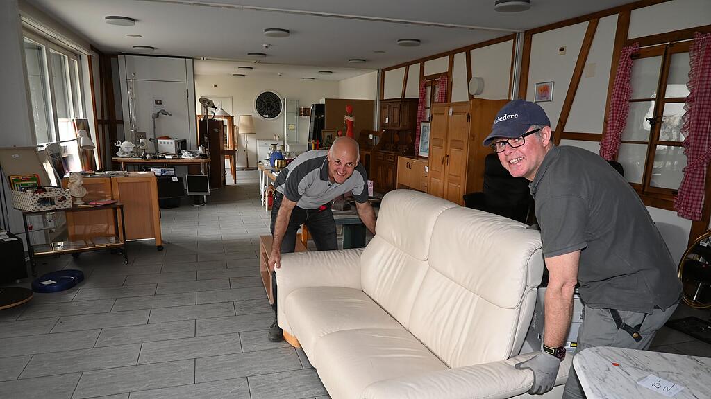 Haustechniker Stefan Camenzind (links) stellt zusammen mit Bernd Eckert die Möbel bereit.