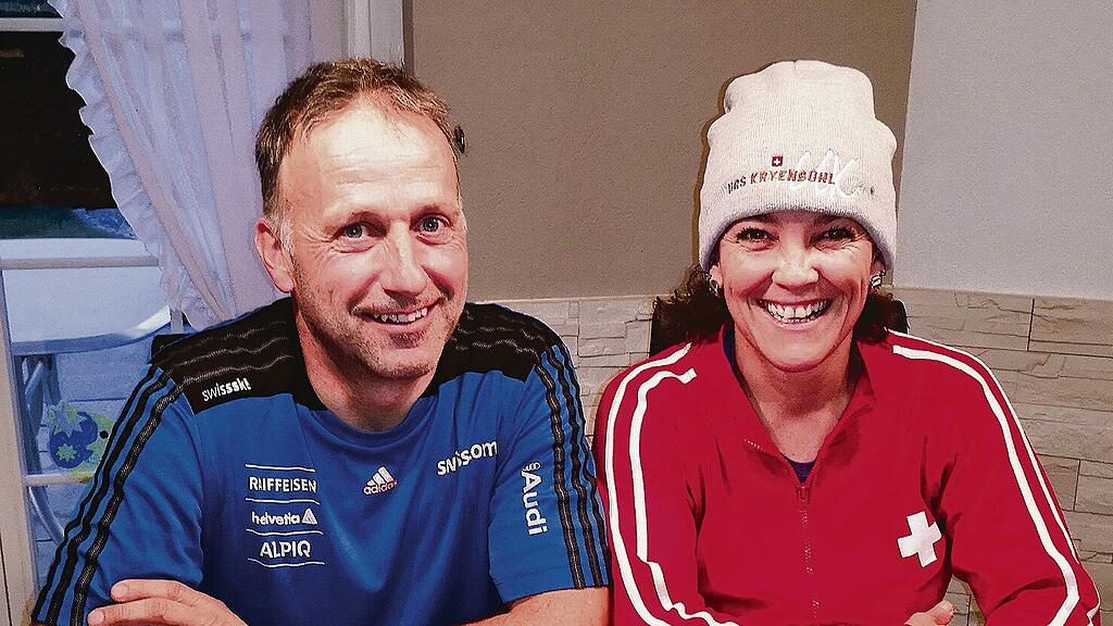 Zu Hause im «Paradiesli»: die Eltern von Unteribergs neuem Skistar Urs Kryenbühl, Erwin und Irene Kryenbühl. Mutter Irene trägt die neue «Urs»-Mütze.