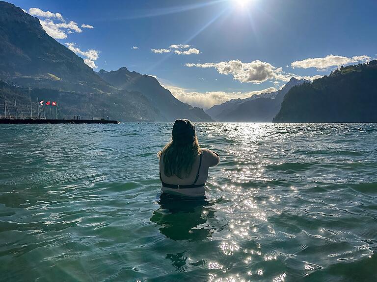Die Kälte zieht wie ein Schmerz die Beine hoch. Als das Wasser auf Bauchhöhe steht, werden ihre Beine warm und sie bekommt den Ehrgeiz, noch weiter einzutauchen. «Ich habe es mir viel schlimmer vorgestellt», lautet schliesslich Sarah Zimmermanns Fazit über ihr erstes Kältebaden.