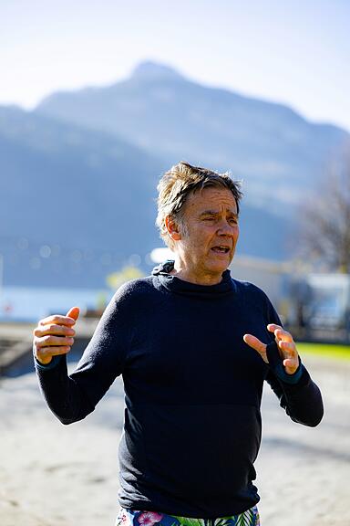 «Von der Kälte lernen heisst, sich selbst im Spiegel zu sehen.» Für Martin Rohner ist das Spüren der Kälte am eigenen Körper auch eine intensive Zeit, um sich einfacher mit dem eigenen Körper zu verbinden und ihn besser zu spüren. Die Motivation solle nicht nur das Körpergefühl selbst sein, sondern auch die Verbesserung der physischen Gesundheit, die Stärkung des Immunsystems oder die Aktivierung des Kreislaufs. Um dies zu erreichen, genügen drei bis vier Minuten Kältebaden. Im Anschluss sollte man sich etwas Dünnes überziehen und sich mit langsamen Übungen wieder aufwärmen, erklärte Rohner weiter. So viel zur Theorie …