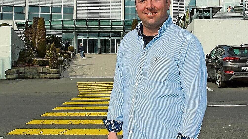 Geschäftsführer Mario Camenzind vor dem Mythen Center Schwyz. (Bild: Christoph Clavadetscher)