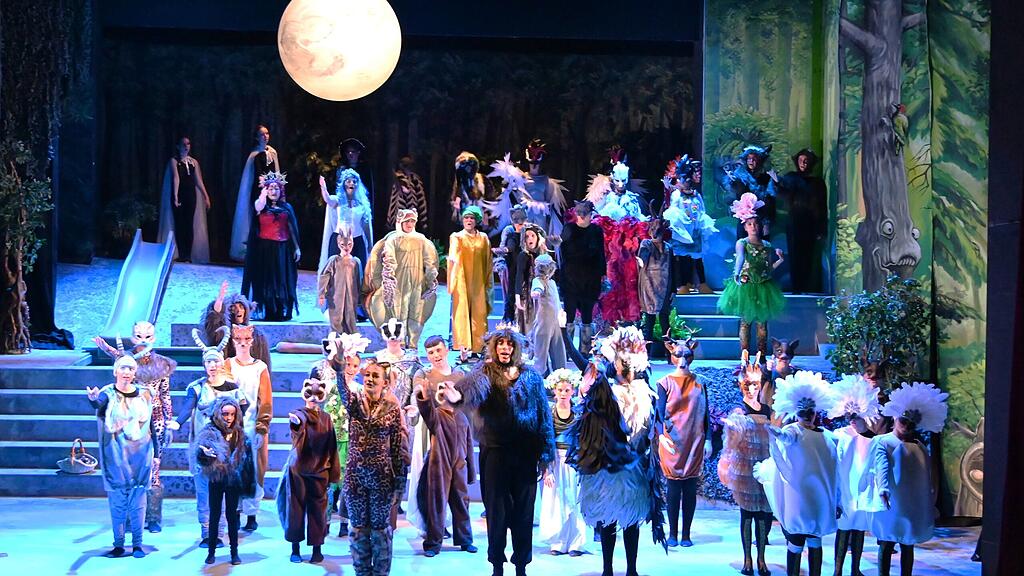 Ausverkauft war die Premiere des Tierpark-Musicals am Sonntagabend im Theater Arth. Zu Recht – was die Kinder und Jugendlichen der Musicalcompany Art & Gold sowie das zwölfköpfige Ensemble des Musikvereins Goldau darboten, war fantastisch. Die farbenprächtige und emotionale Inszenierung von Esther Rickenbach ging mit ihrer tiefgründigen Story mitten ins Herz. Daniel Rickenbach schrieb die Musik zum Stück, und 180 Kostüme sind durch Sira Dudle gefertigt worden, teilweise aus dem Fundus und upgecycelt, teils neu geschneidert.