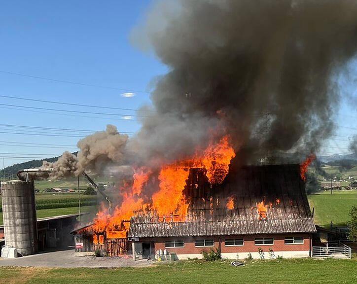 Am Dienstagnachmittag ist nach 15 Uhr in einem Stall am Färlibach in Siebnen ein Brand ausgebrochen. Beim Eintreffen der Feuerwehr stand das Gebäude bereits in Vollbrand, wie die Kantonspolizei Schwyz mitteilte. Die Feuerwehren Schübelbach und Tuggen konnten ein Übergreifen des Feuers auf eine benachbarte Remise verhindern und den Brand rasch löschen. Die zum Zeitpunkt im Stall befindlichen Rinder konnten rechtzeitig ins Freie gebracht werden. Menschen und Tiere kamen keine zu Schaden.