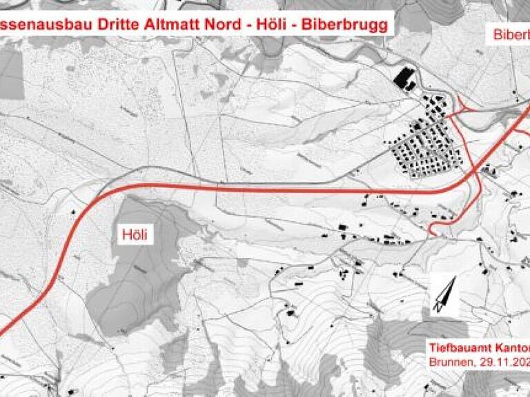 Das neue Teilstück verläuft zwischen Dritte Altmatt Nord, Höli und Biberbrugg. Entstehen sollen zwei Fahrspuren mit einer Breite von je 3,25 Meer sowie beidseitig Radstreifen, die mindestens 1,25 Meter breit sein sollen.