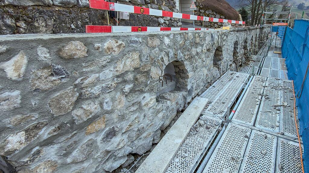 Nach zehn Jahren Diskussionen über das richtige Vorgehen bei der Sanierung der Axensteinmauer haben die Arbeiten im November 2025 begonnen. Ein dreiköpfiges Urner Team der Marti Bauunternehmung AG Luzern ist mit der heiklen Instandsetzung und dem teilweisen Neubau der historischen Stützmauer beauftragt. Inzwischen ist etwa Halbzeit: Dank dem bisher meist trockenen Wetter kommen die Arbeiten gut voran.